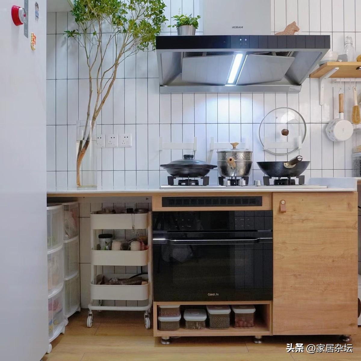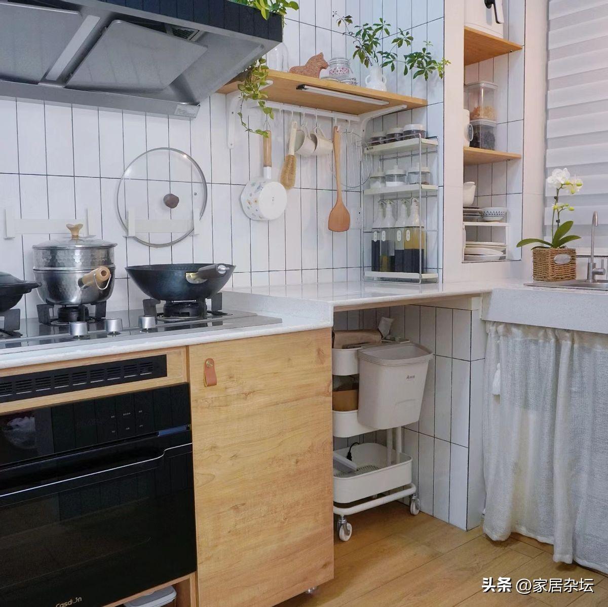 櫥櫃的地櫃,空一格,裏面不裝底板。可以用來放置小推車或者是垃圾桶,非常實用。