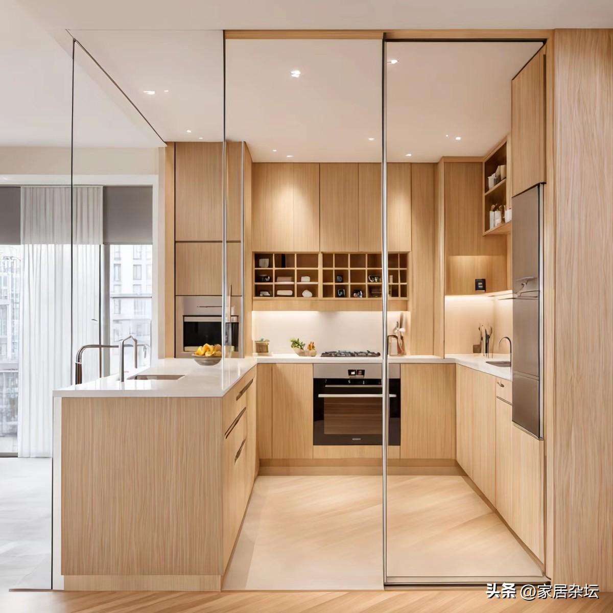 雙面玻璃牆加隱藏門的廚房,給人的感覺就是廚房特別亮堂,而且顯得很大。