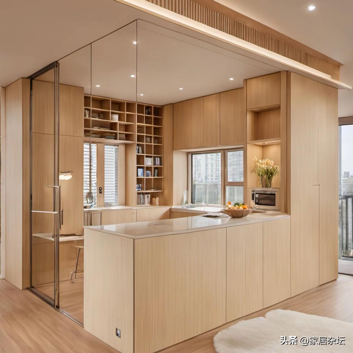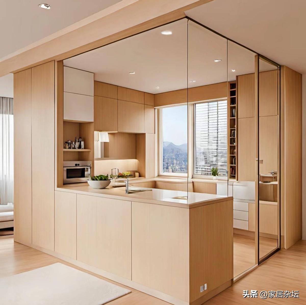 於是,一些新的廚房裝修設計方案就出來了。目前,被越來越多人喜歡的,就是廚房裝修,用雙面玻璃牆加上隱藏門。