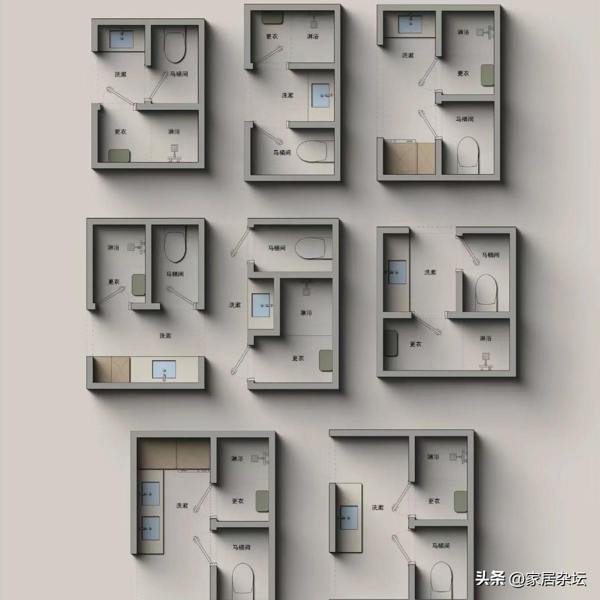 ①、尺寸的控制。對於每個功能區域,要合理控制尺寸。例如淋浴區,一般要不小於1米×1米。如廁區要保證放馬桶,前面有合適的空間。