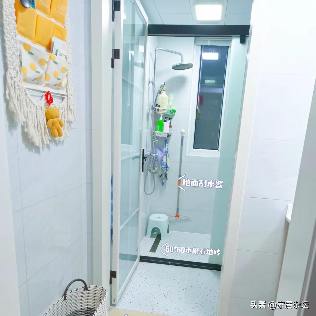 因爲雖然是把淋浴區與其他區分開了,但是,洗完澡以後,發現地面上還容易溼漉漉的,牆面上也潮溼。這是由於我們沒有完全把幹區與溼區完全分開。