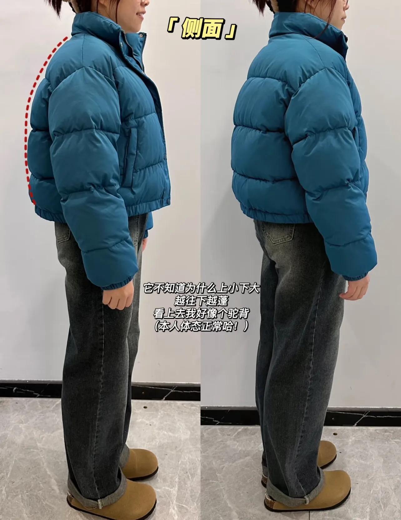 且不說,短款羽絨服穿着護不住腰腿、還是不暖和的問題,就問穿上效果真的顯好看、腿長嗎?我想答案也是不見得!