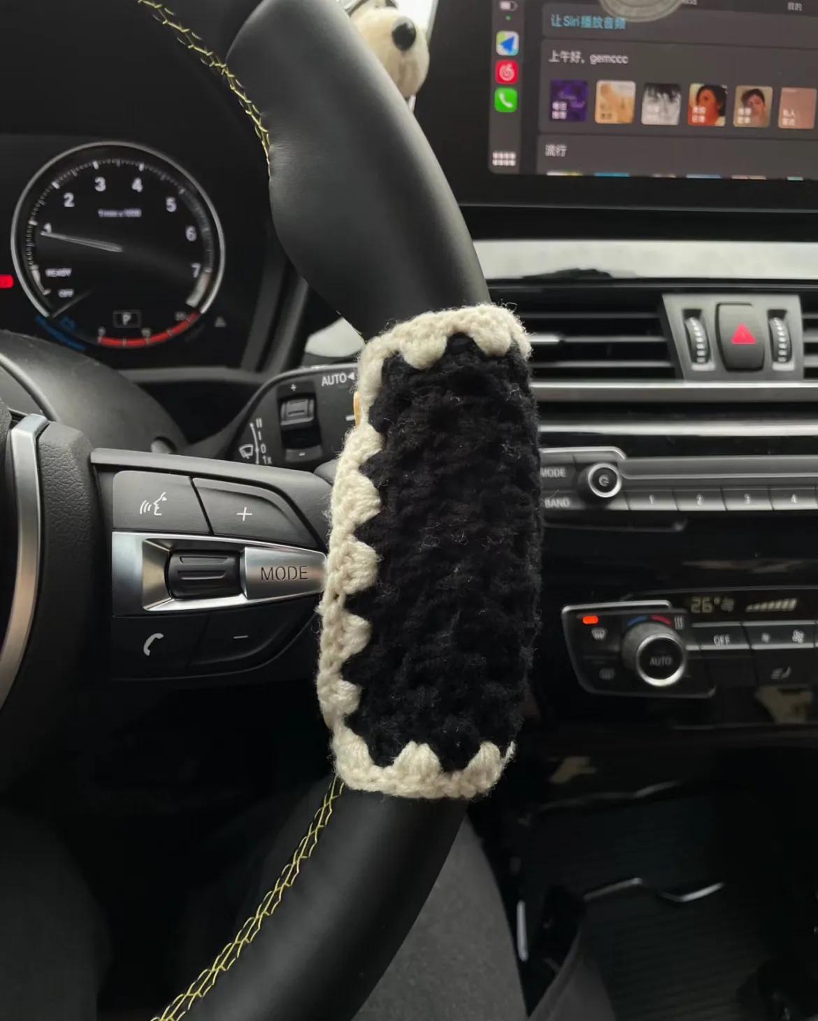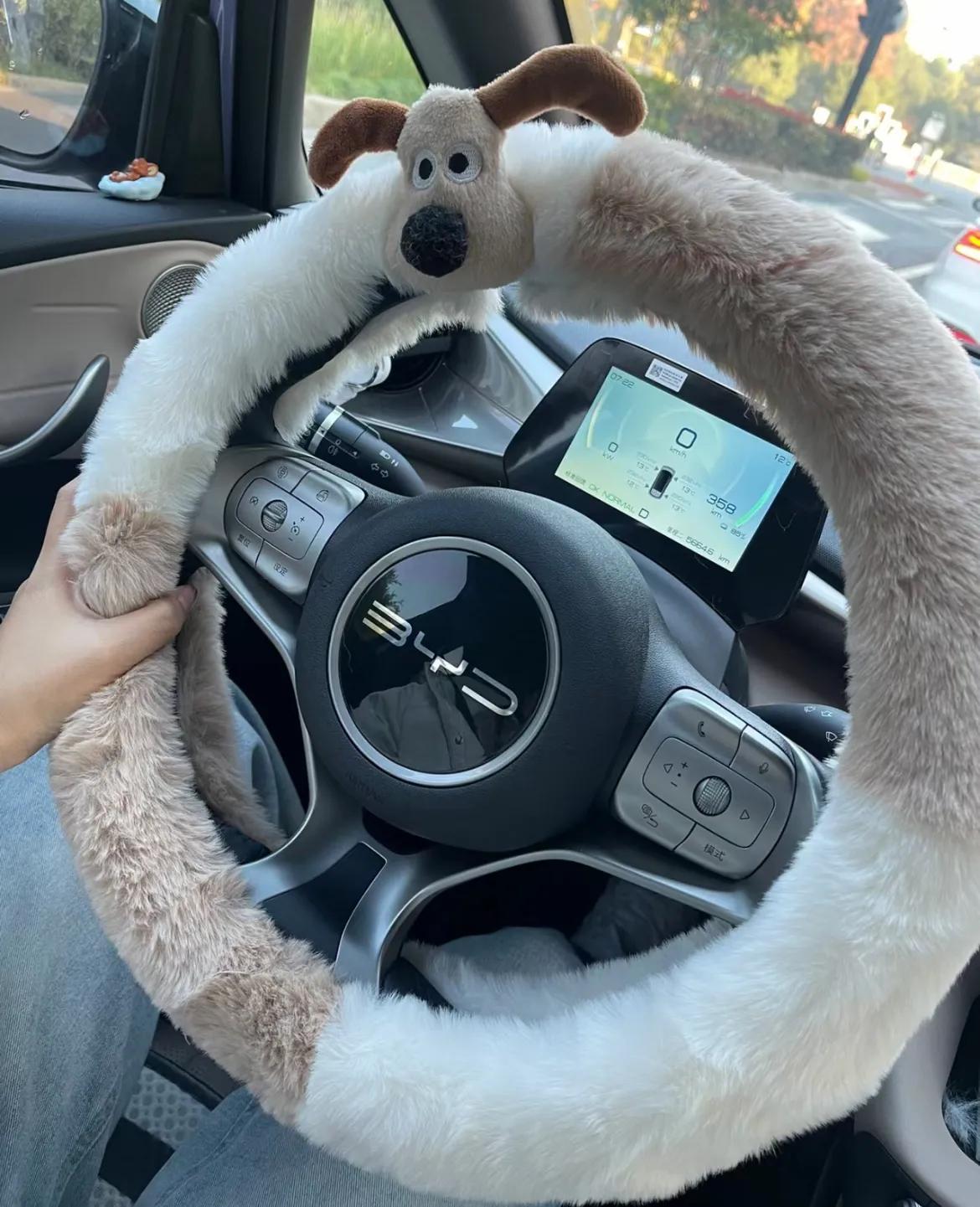 因爲冬天冷,很多人就裝備齊全,包括方向盤,都套上了毛絨套。