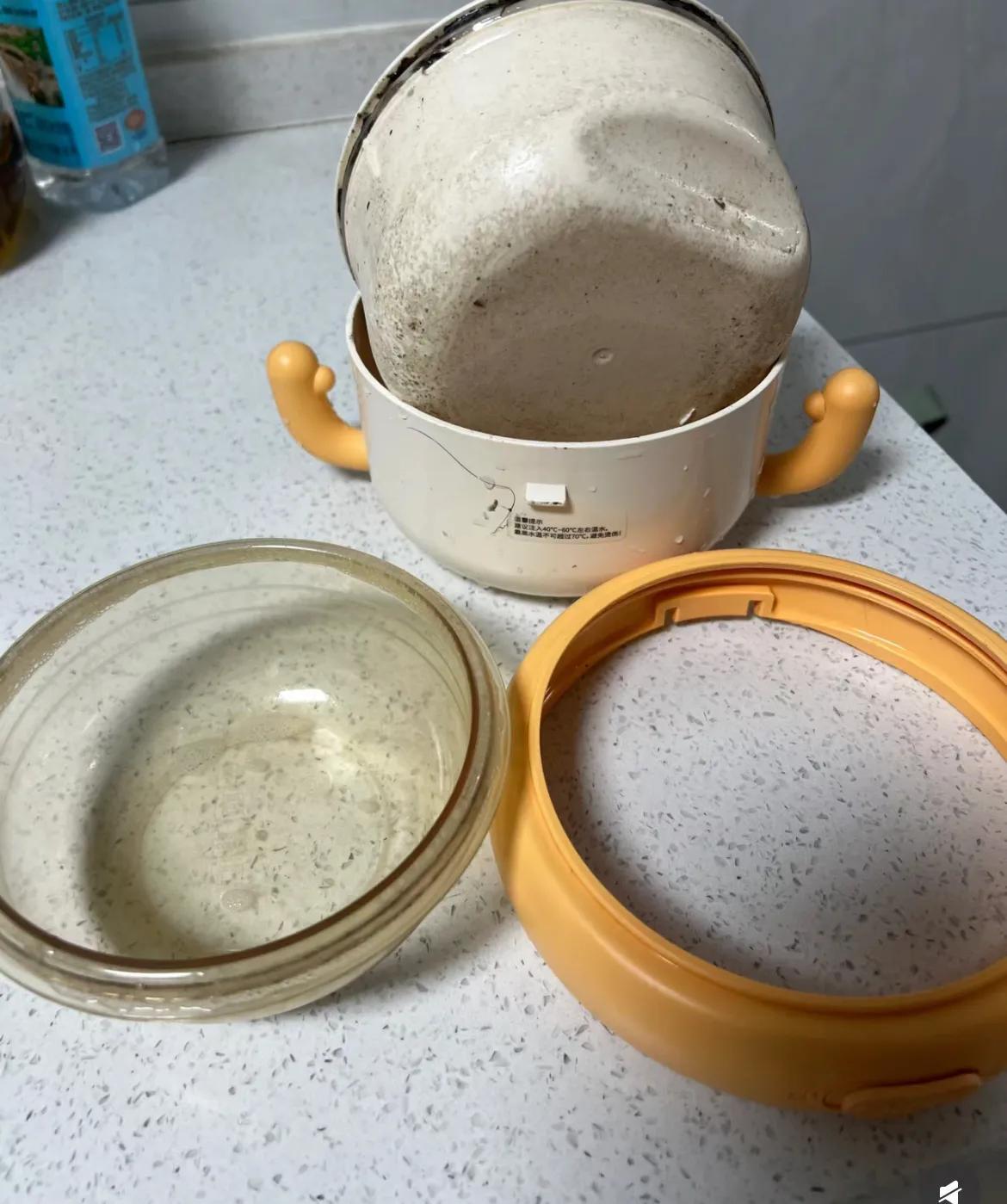 更讓人糟心的是髒,很多寶媽都忽略了,注水層因爲長期注水會產生各種細菌污垢,大多數打開都是上圖的樣子,真不敢相信這是給千挑萬選來給寶寶喫飯的碗,簡直太“噁心”了。