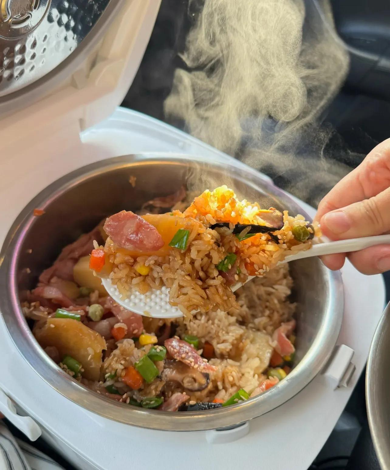 也不知道哪個大機靈鬼腦袋一轉,想出了帶電飯煲上高速的主意,但你還別說,真的太受用了。