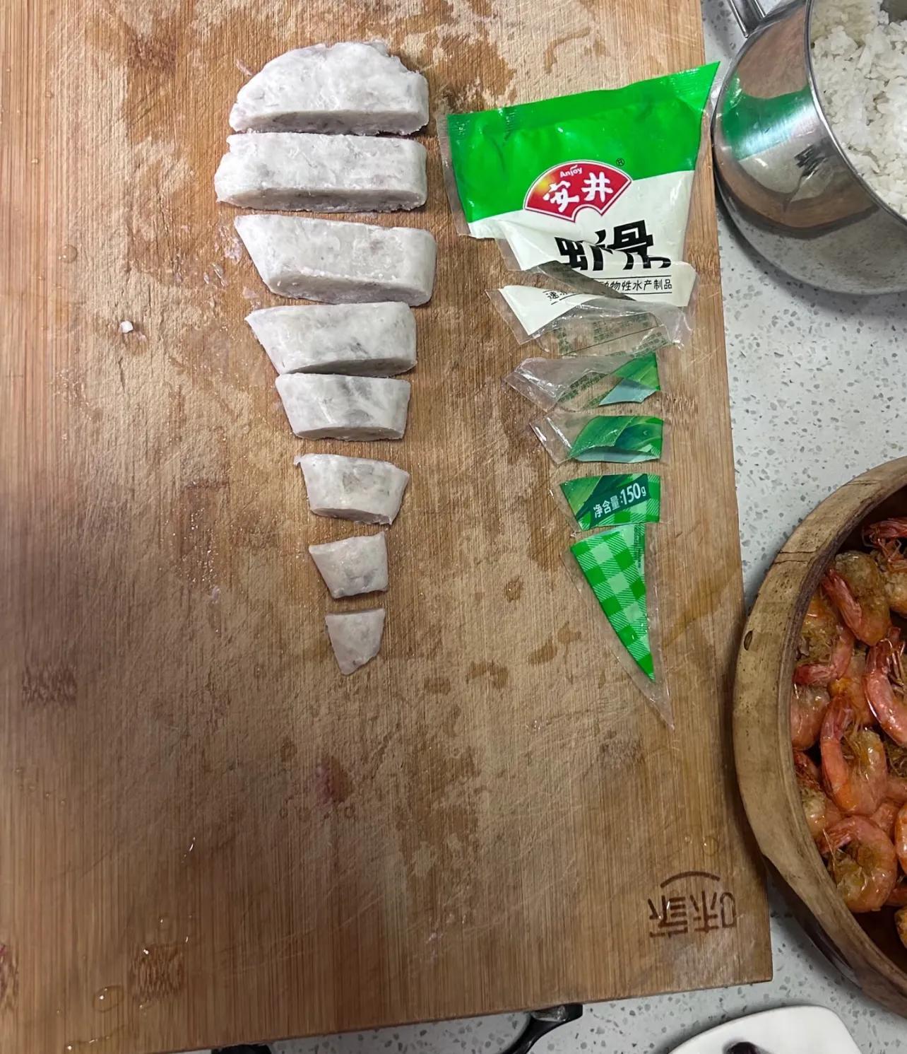 這個蝦滑處理法,絕對稱得上是解救廚房人般的存在,它連解凍都不用,直接上刀隔着袋子切。