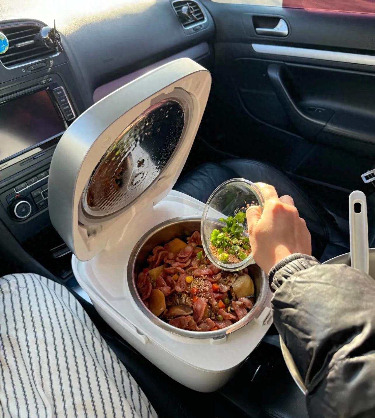 出門前,燜上一鍋飯,放在車上,既保溫還不用擔心溢出。