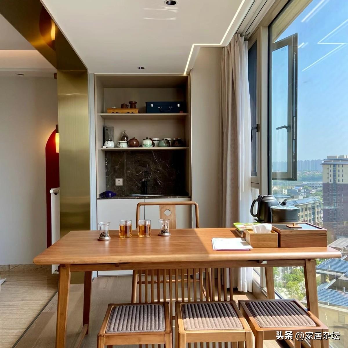 陽臺打造成茶吧。在陽臺擺個茶几,放上茶具。下午夕陽夕照的時候,煮着茶,看着夕陽,是很不錯的享受。
