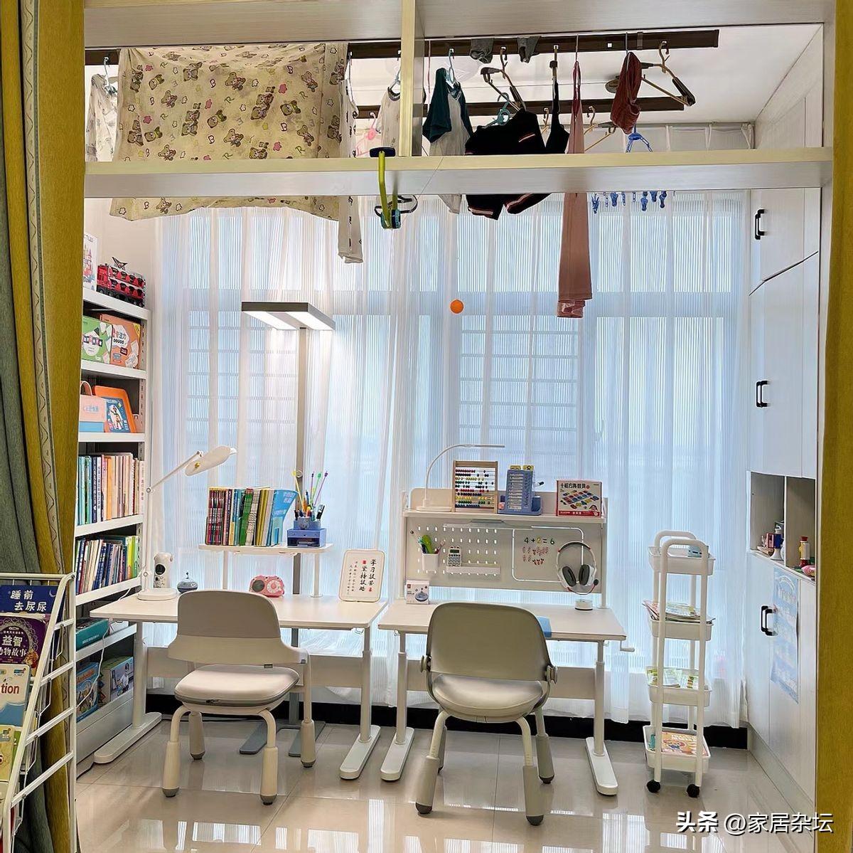 這個區域,搭上書櫃,不僅能夠學習,而且能夠工作,兩不誤,是非常實用的。