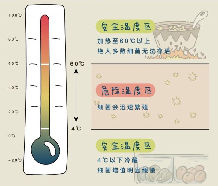 實際上,飯菜在餐盤中隨着溫度的下降,細菌就開始繁殖。4℃~60℃被稱爲食物的“危險溫度區”,如果剩菜長時間處於室溫,細菌繁殖的速度會加快,導致食物更容易變質。