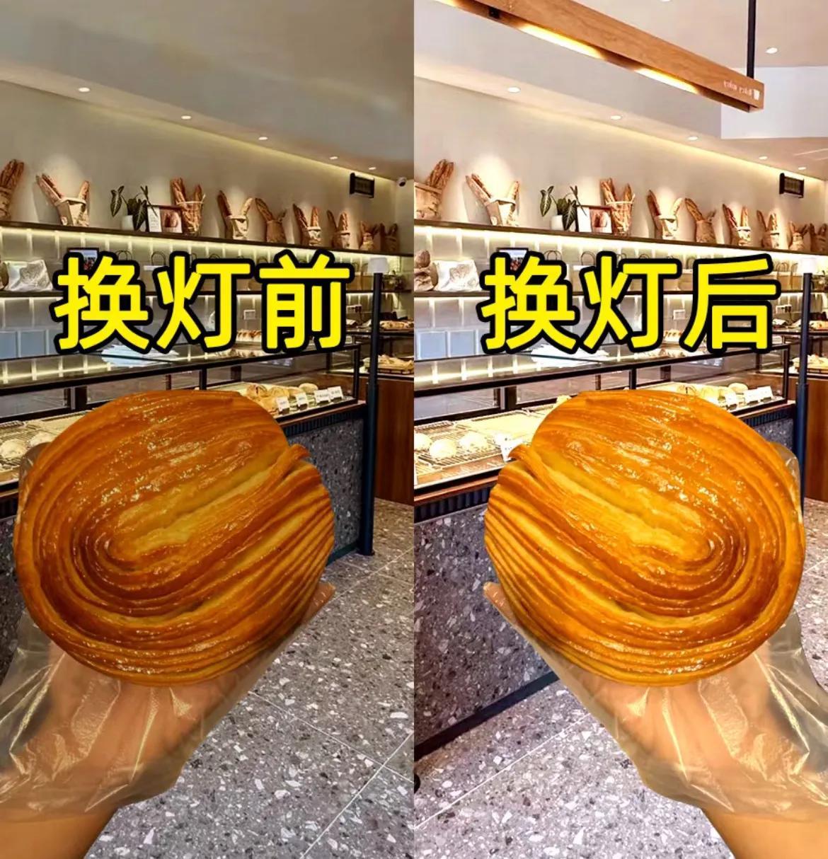 包括熟食區,像麪包、堅果等,打上黃光,跟普通燈光相比,明顯是有燈光小心機的,看起來更美味誘人。