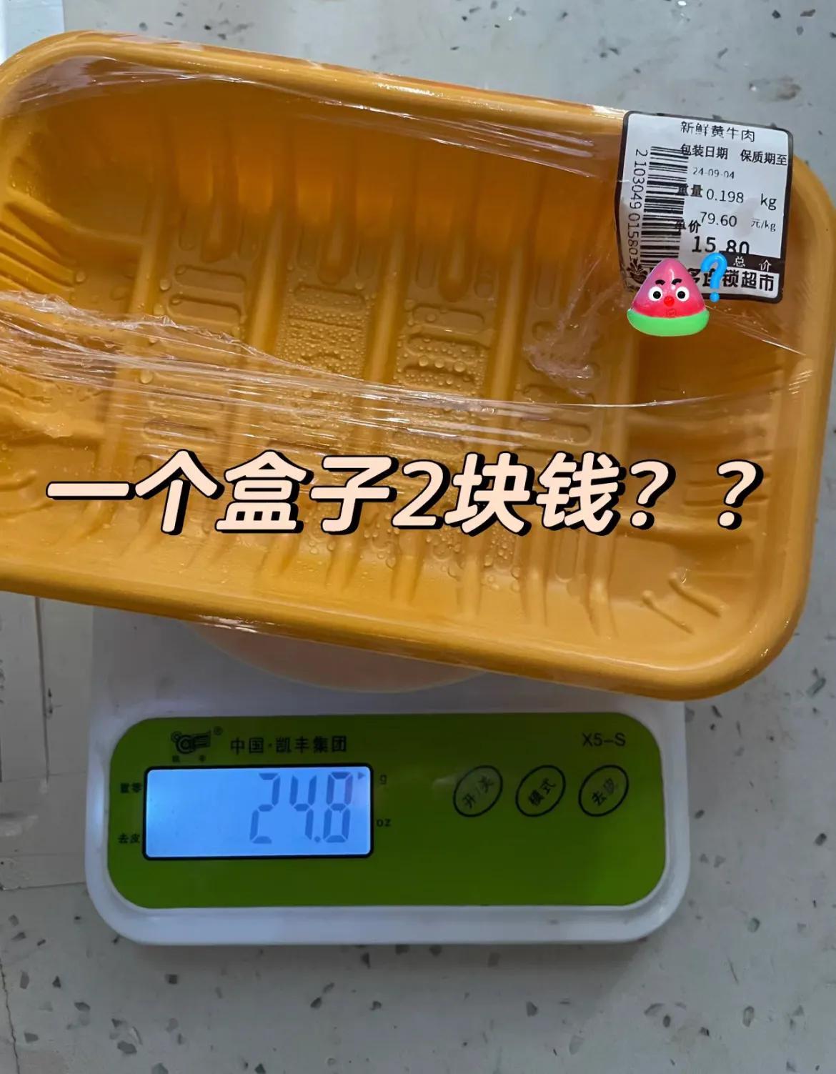 還有這種放牛肉的盒子,39.8一斤的牛肉,一個盒子算下來就要2塊錢;