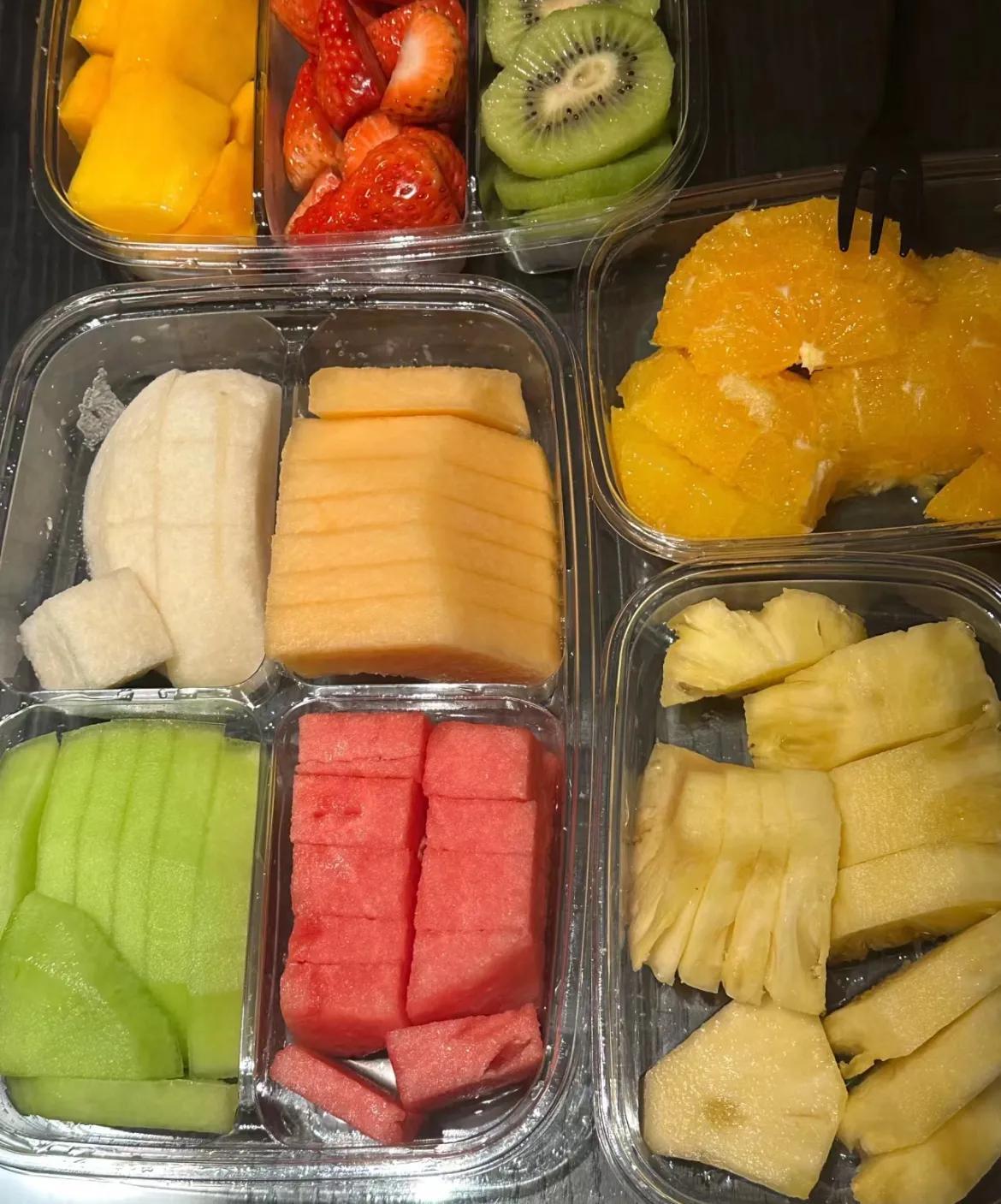 還有這種削好的果盤盒,看着裏面既有多種水果搭配,營養全面,又不用自己動手洗、切,以前我去超市,我都會順手買一盒。