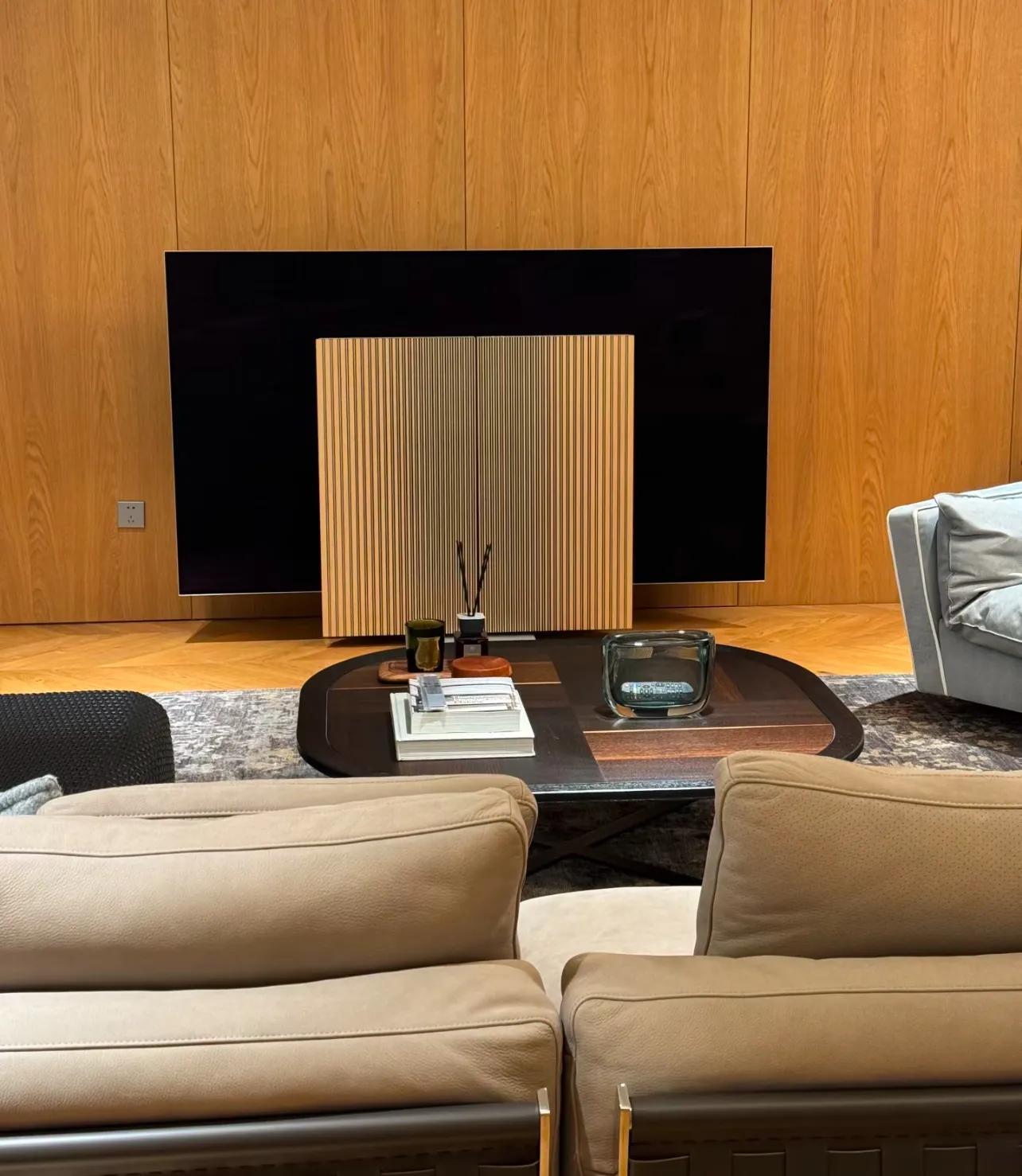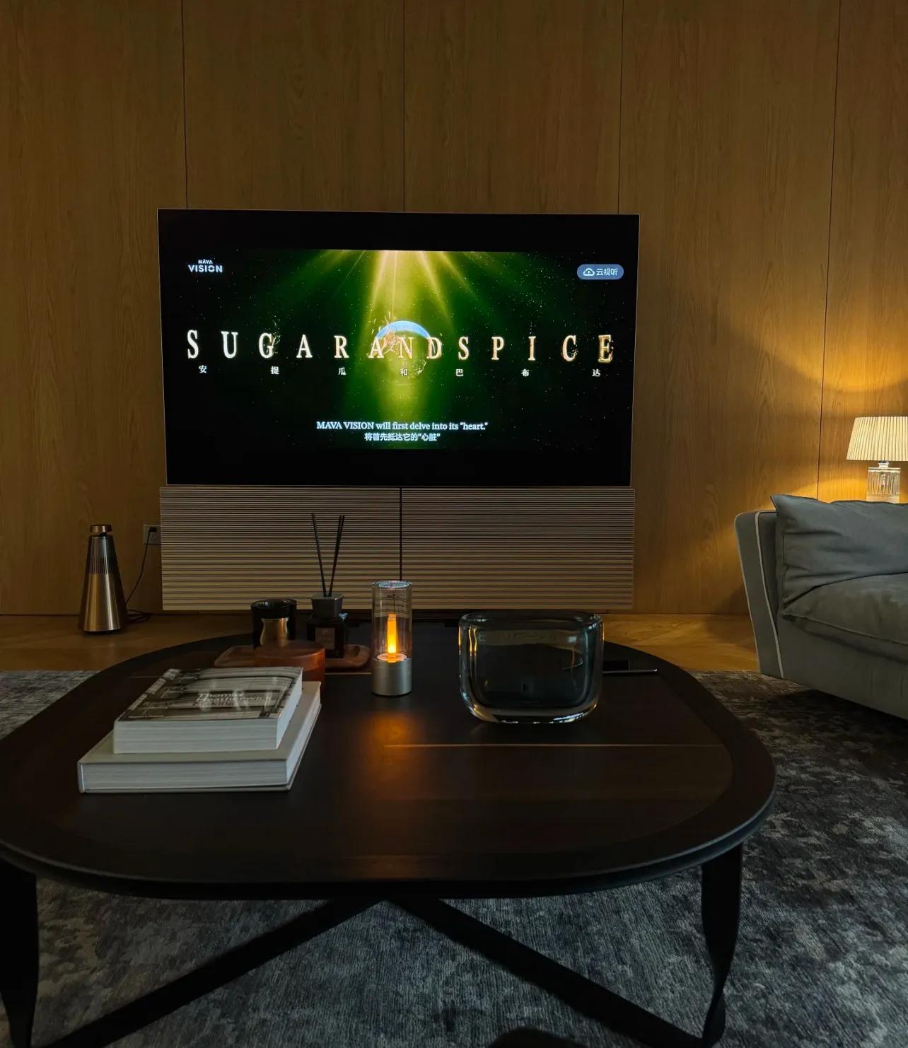 其一,更加靈活,電視變成了一個可移動的設備,哪裏需要推哪裏,因此也打破了傳統的“會客室”客廳的固定模式,讓客廳的佈局,可以動起來,變成真正意義的「起居室」;