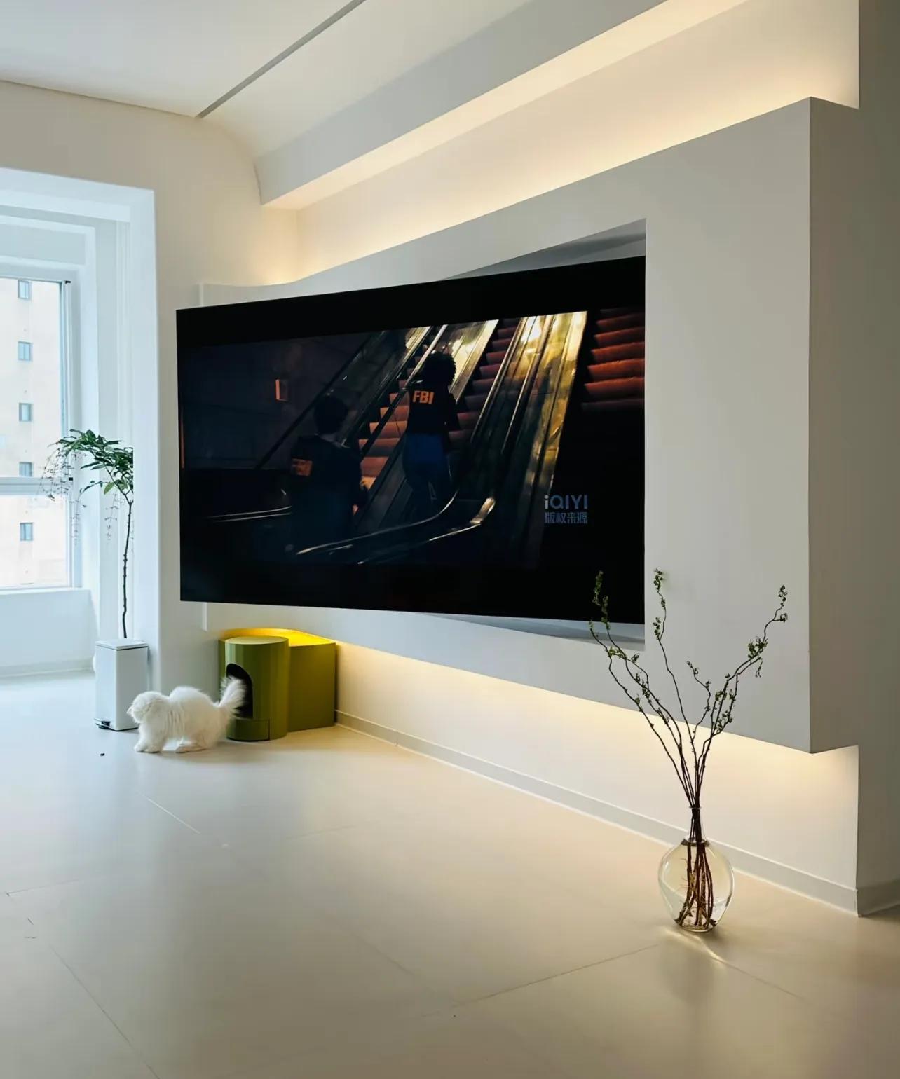 如果家裏有隔斷需求,那懸浮電視牆,一定是個值得考慮的設計。