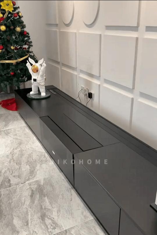 但這還不夠,既然都花錢了,那與其做一個電視牆,不如做成電視櫃,還能儲物。