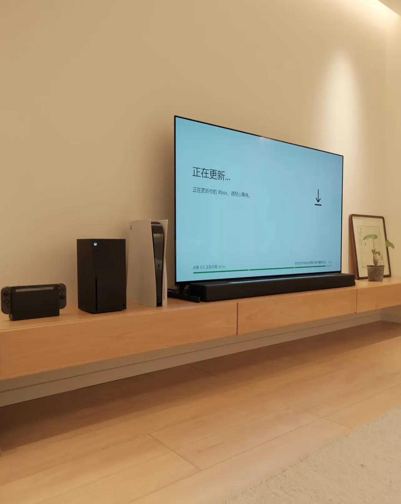 有的人,會把電視物盡其用,迴音壁、遊戲機設備全置辦,不僅看電視還玩遊戲、聽歌,把客廳打造成了一個以電視爲中心的娛樂空間。
