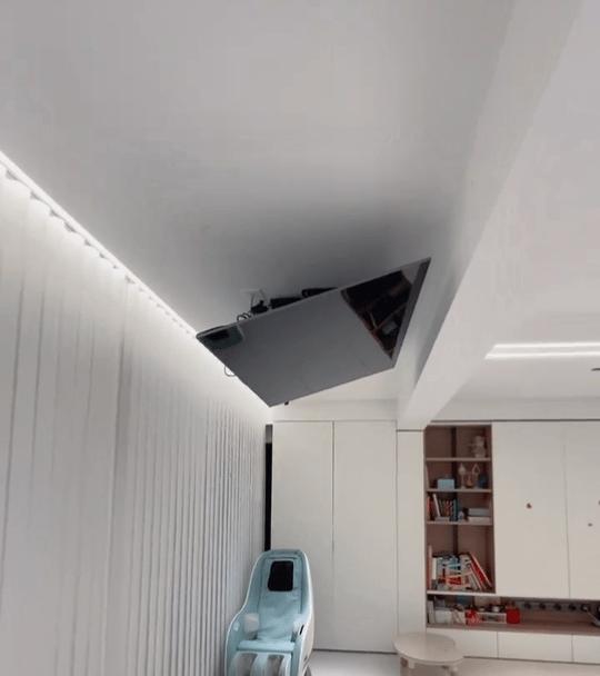 如果隔斷的兩邊,都有看電視的需求,還可以考慮這種可旋轉的懸浮電視牆,旋轉方式,有手動的,也有電動的!