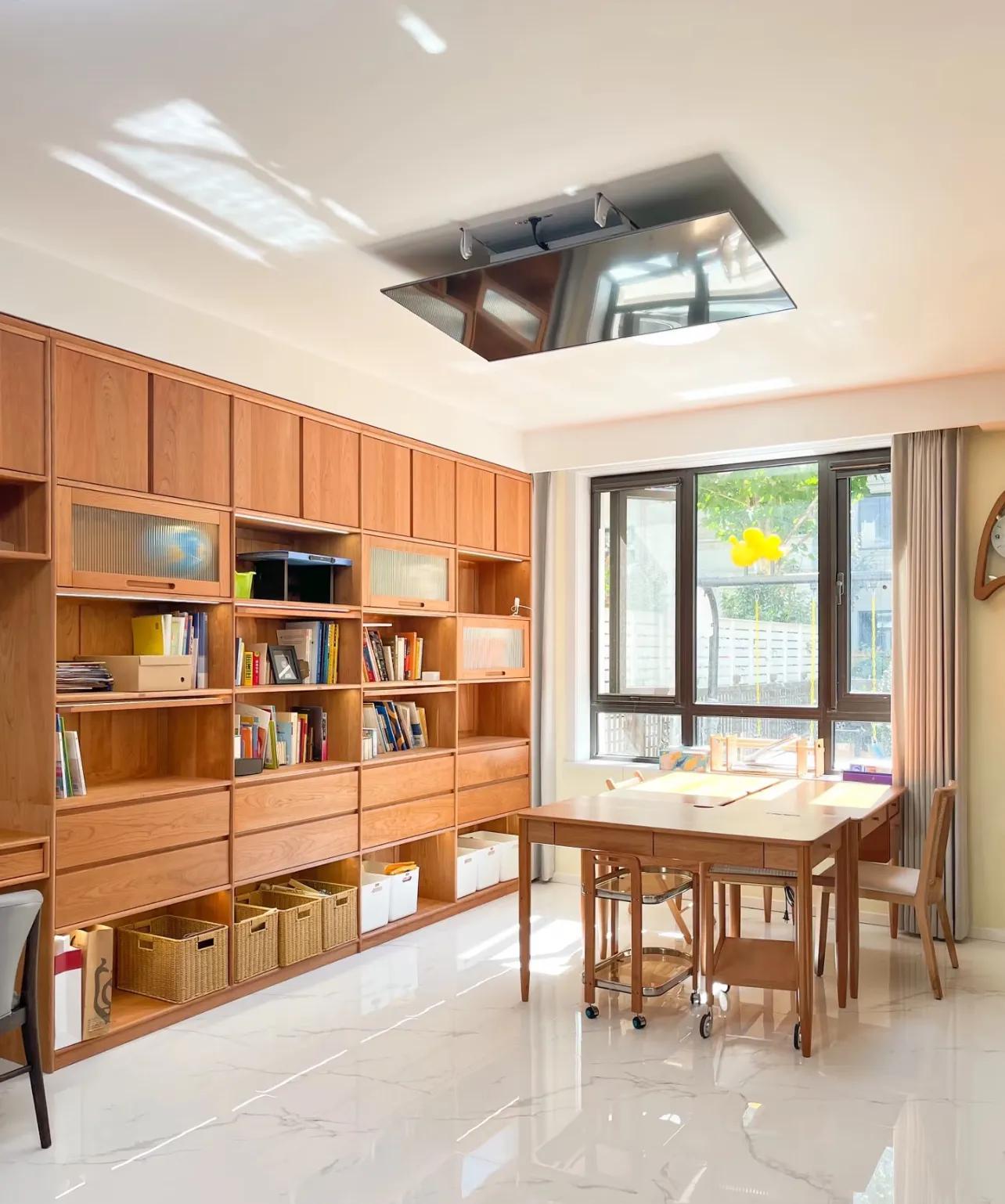 這麼做很符合當下“去客廳化”的思路,平時家裏的客廳可以像書房一樣,放下電視,又能滿足偶爾的看電視需求。