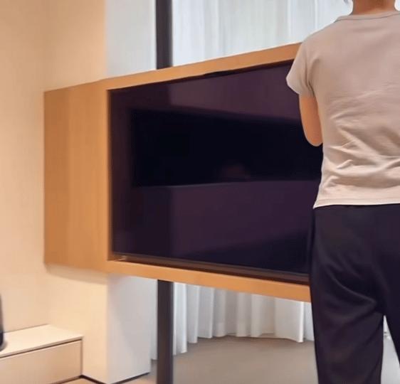 想隱藏電視的時候,把門往中間拉,需要看電視的時候,門往兩邊推。