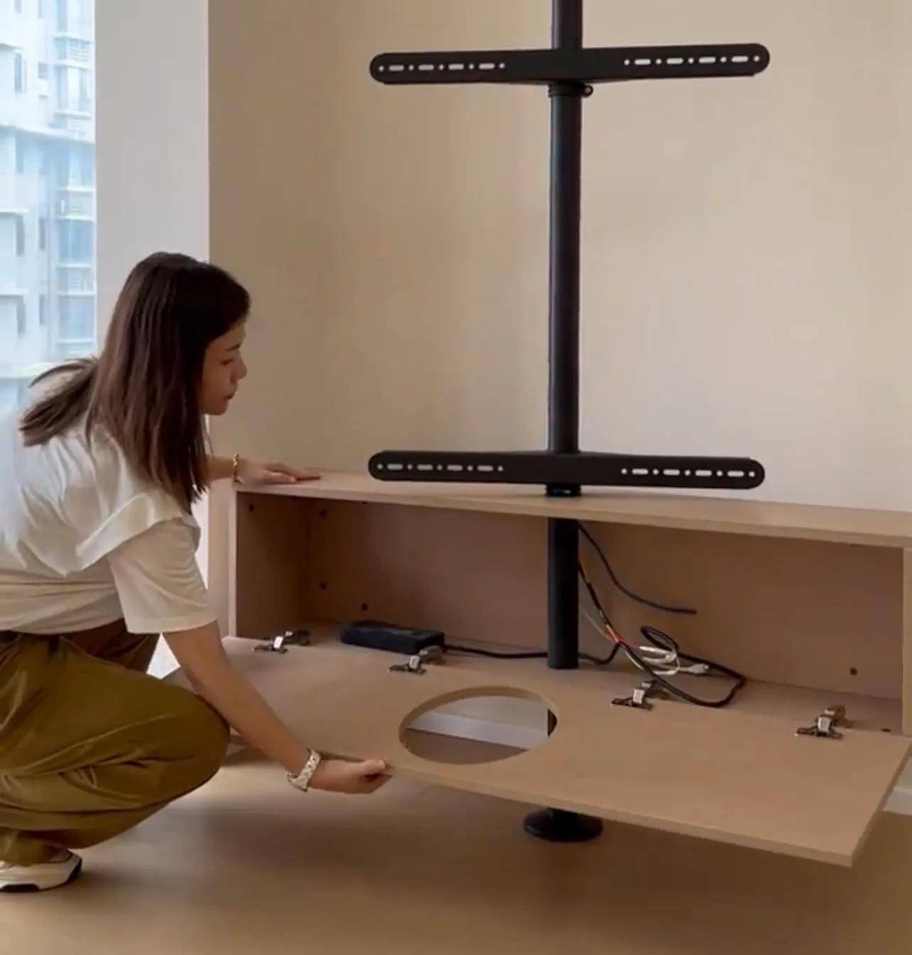 電視落地支架,這兩年非常火,是除了傳統的「立在電視櫃上」和「掛在掛在牆上」,最火的電視放置方式了!