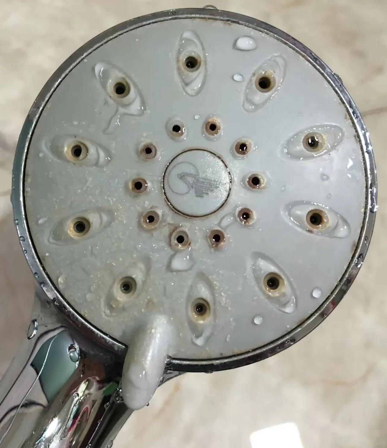 花灑,隨着時間越用越長,出水孔會堆積水垢、細菌。