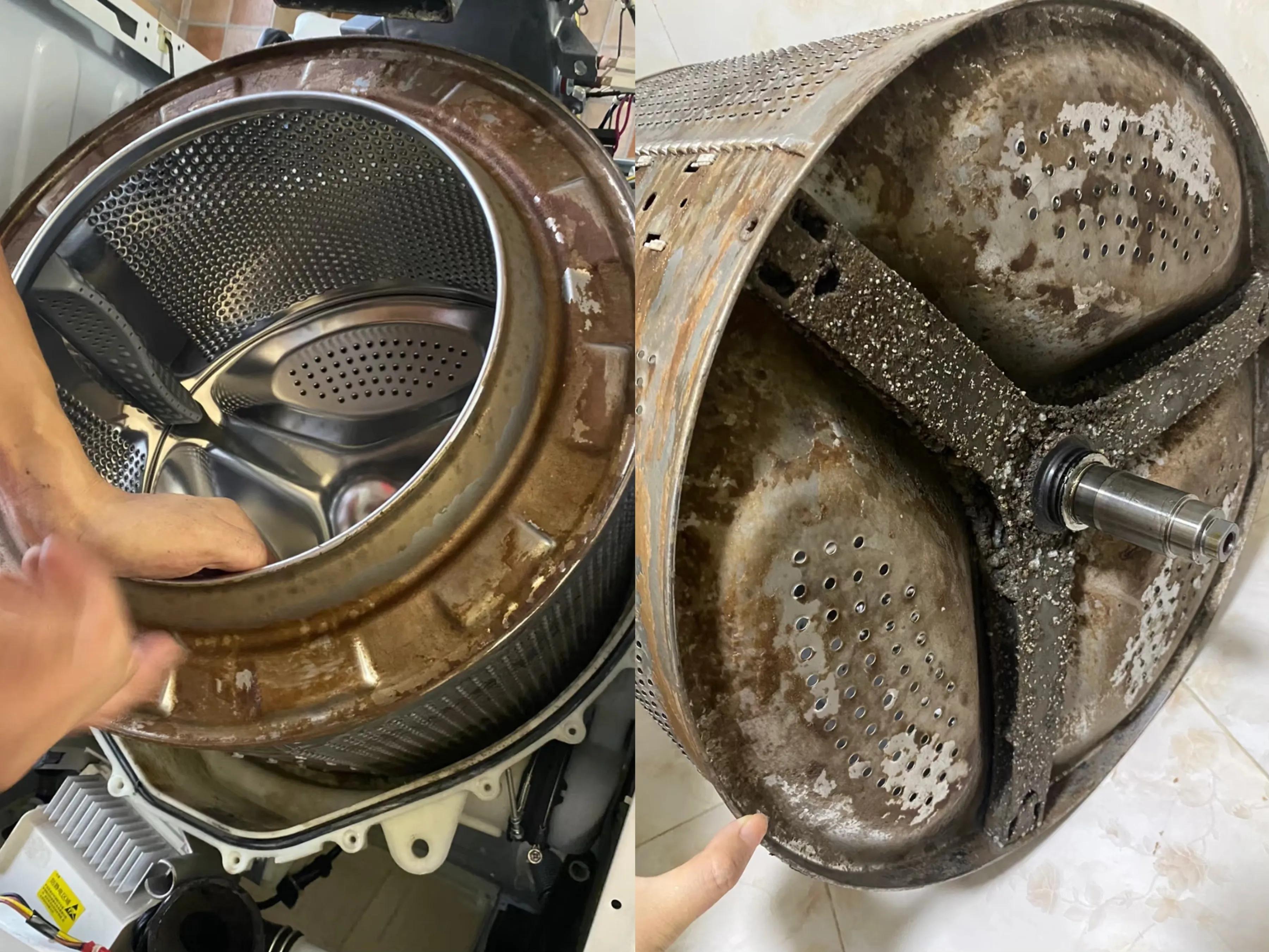 因爲它實在是太髒了!我敢打賭80%家庭的洗衣機內筒,都比上面圖中洗衣機內筒,還慘不忍睹!