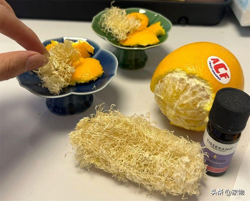 絲瓜絡本身就有很細密的網狀結構,拆開來放到托盤裏,再滴上幾滴精油,就可以均勻緩慢地滲出香氣,比什麼擴香木、擴香石都好用,最關鍵的是成本也很低廉。