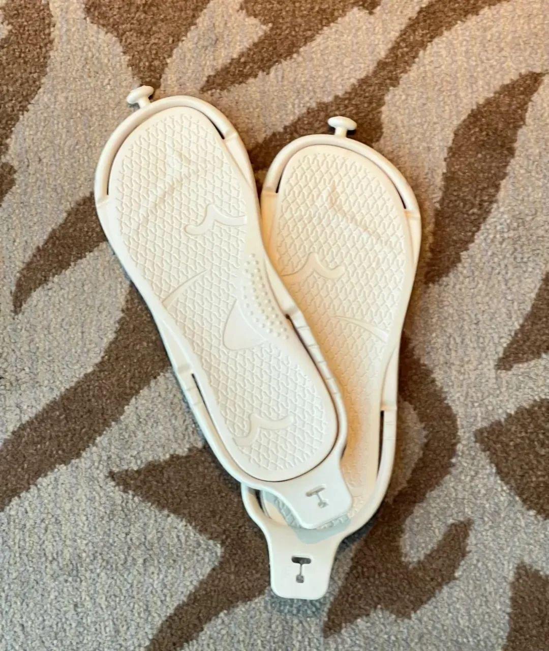 給大家分享一個我自用的旅行拖鞋,超級輕便,它展開是扁扁一片,體積非常小,放在行李箱見縫插針,一點不佔位置。