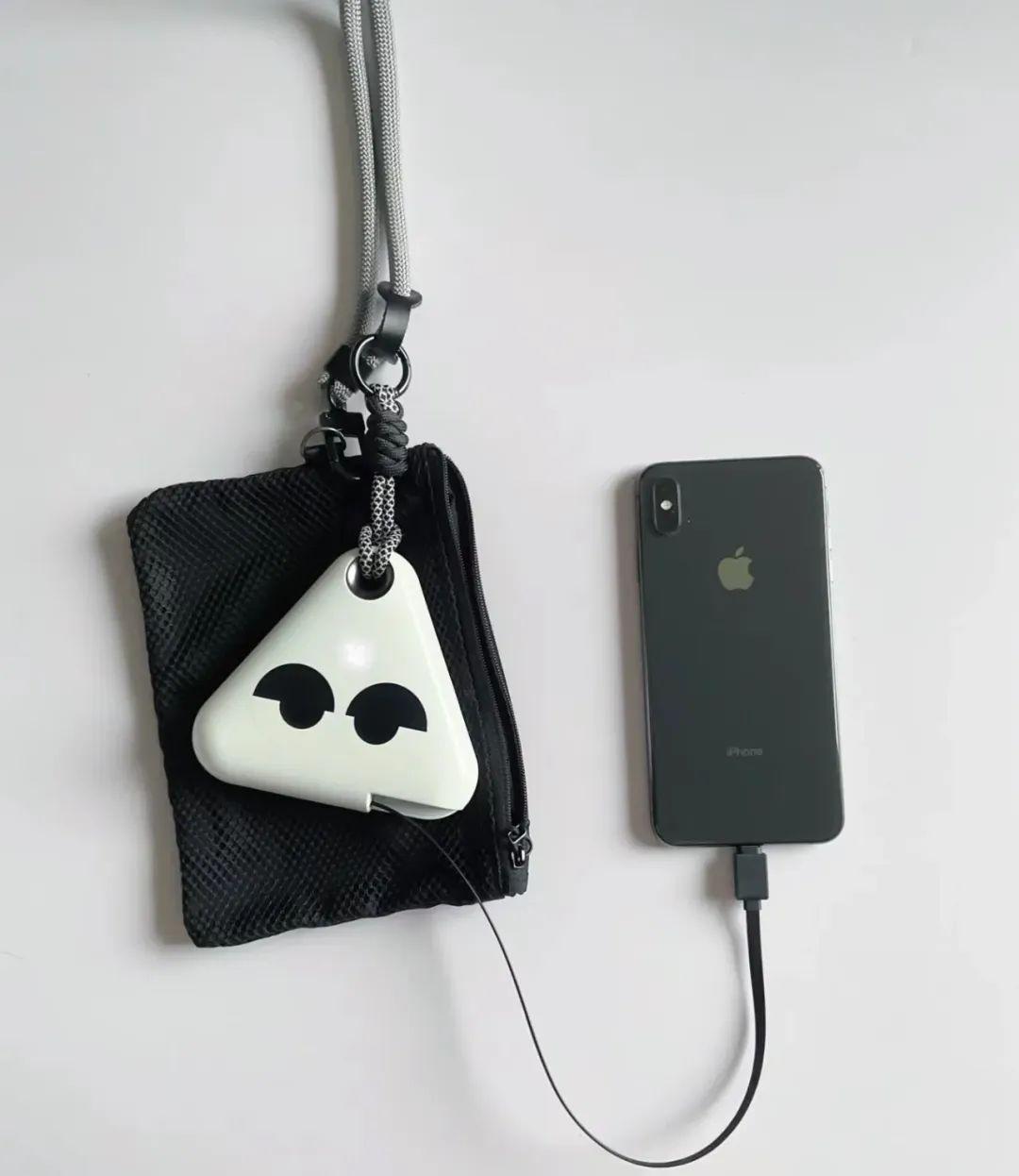 隨身攜帶充電寶已經成了習慣,買這款充電寶是被它的顏值萌到了,三角形像個小飯糰,非常可愛;尺寸很小,可以放進手機掛繩自帶的收納袋裏。