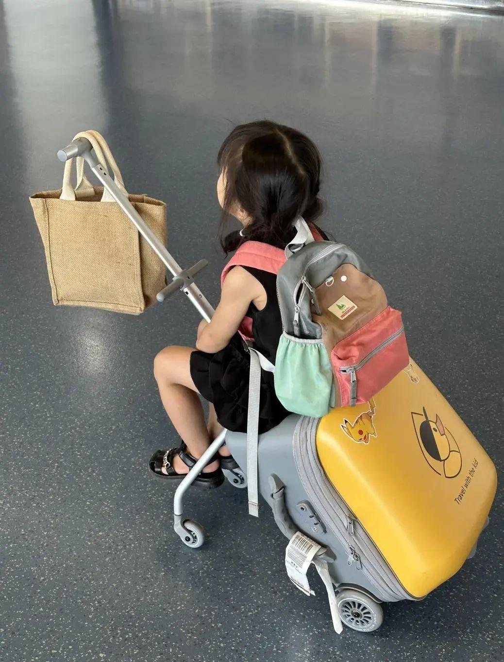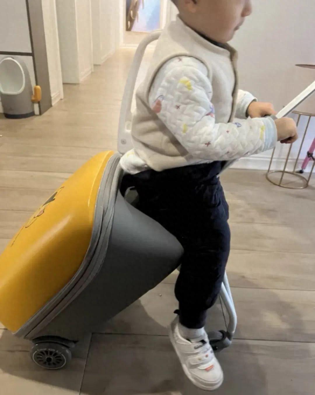 它把行李箱和推車二合一,既能裝出門要用的物品,又能給寶寶走累的時候坐着休息,家長拉着走也輕鬆。