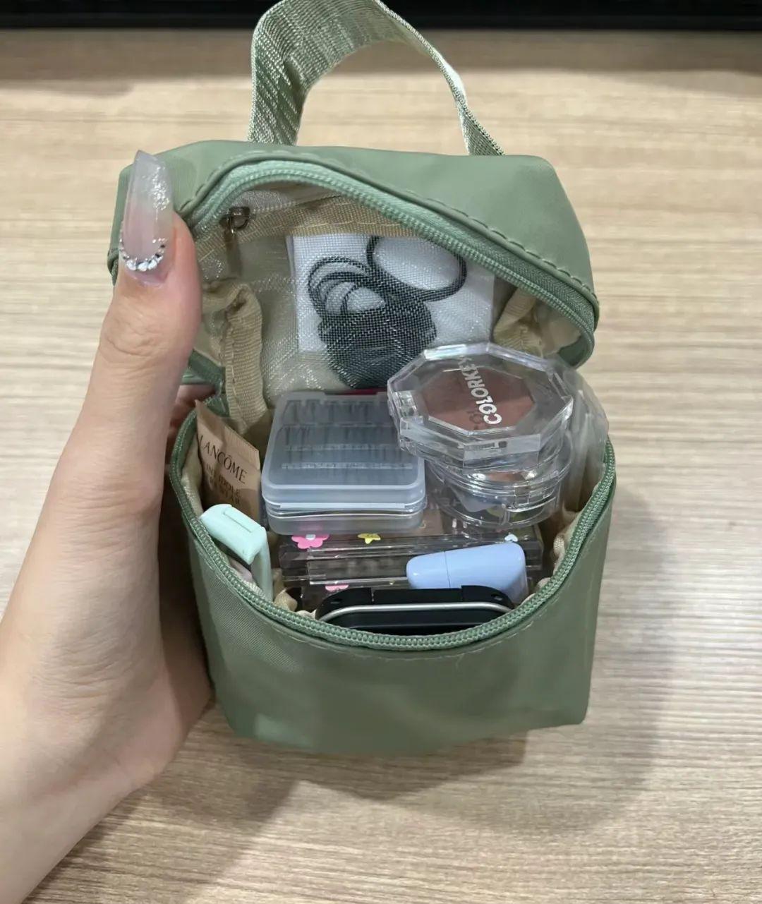 化妝包我買過不下10個,用的最頻繁的還得是這個迷你小綠包,它看着小,截面還沒有手掌大,但是深度很夠,超級能裝。