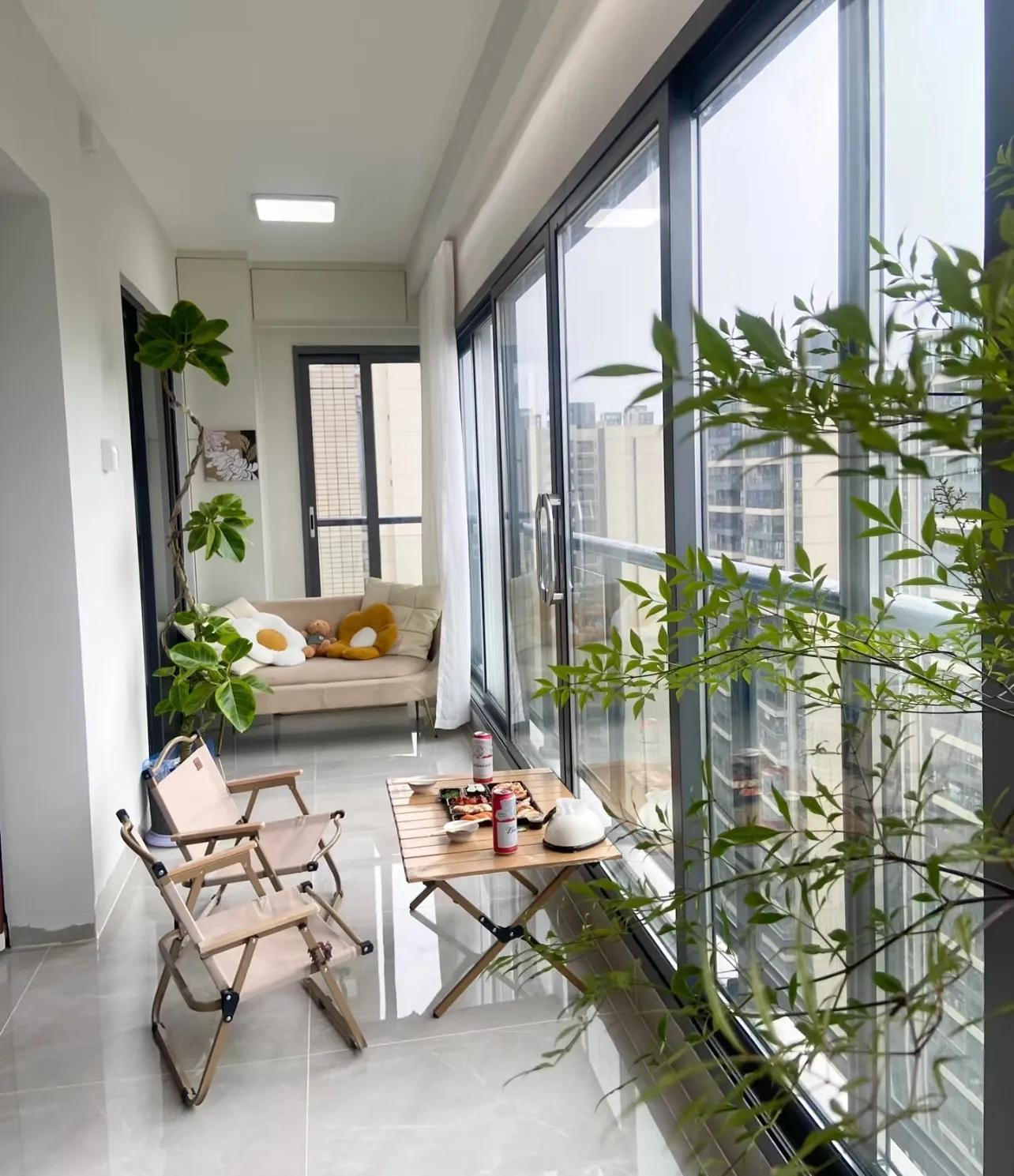 在原本半敞開陽臺的基礎上,增加一排推拉門,想要透氣的時候,完全或適量打開都可以,非常靈活;
