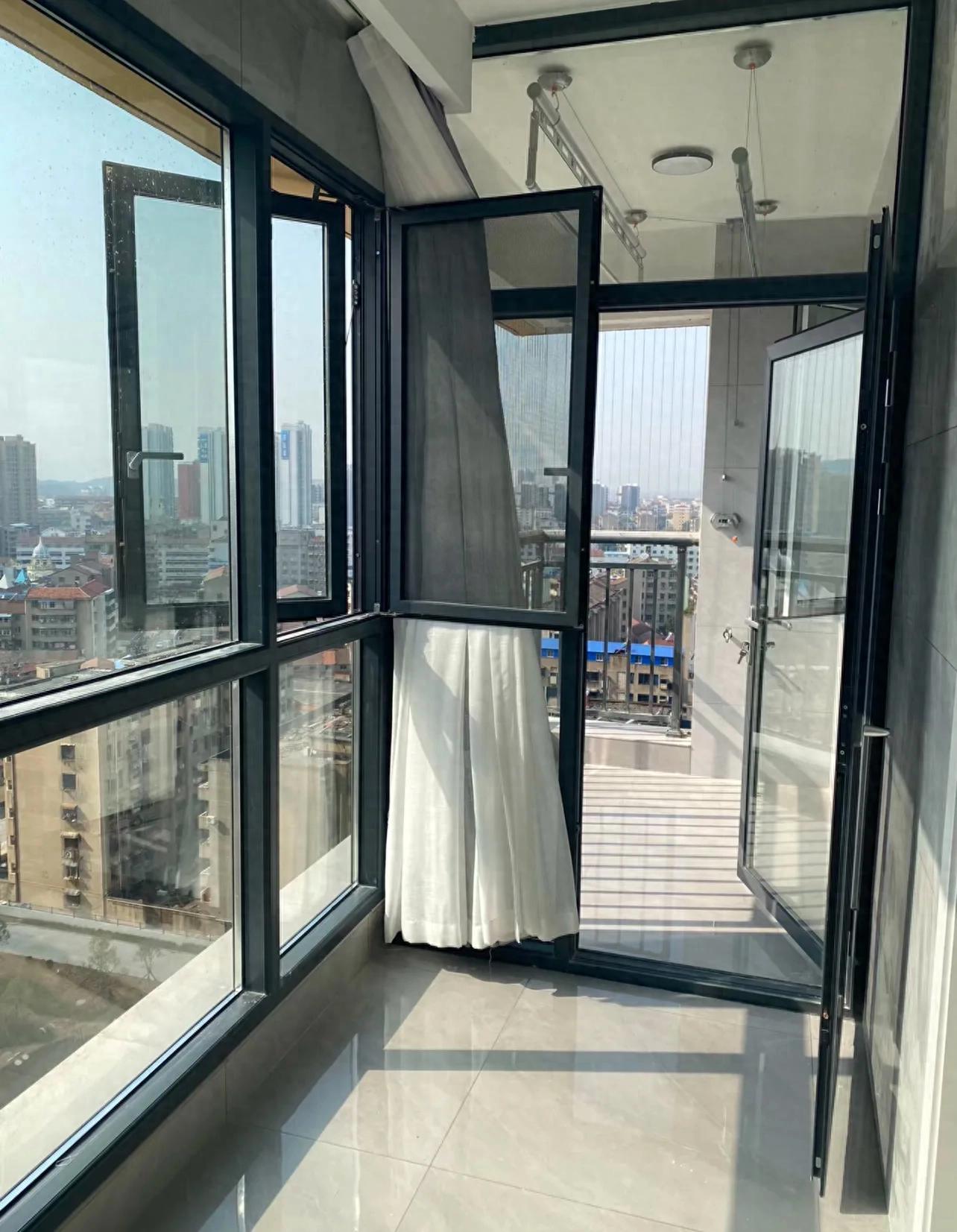 同樣是封窗,半摺疊窗則是把陽臺縱向一分爲二,封一半,留一半摺疊,讓陽臺封窗,變得“可開可合”。