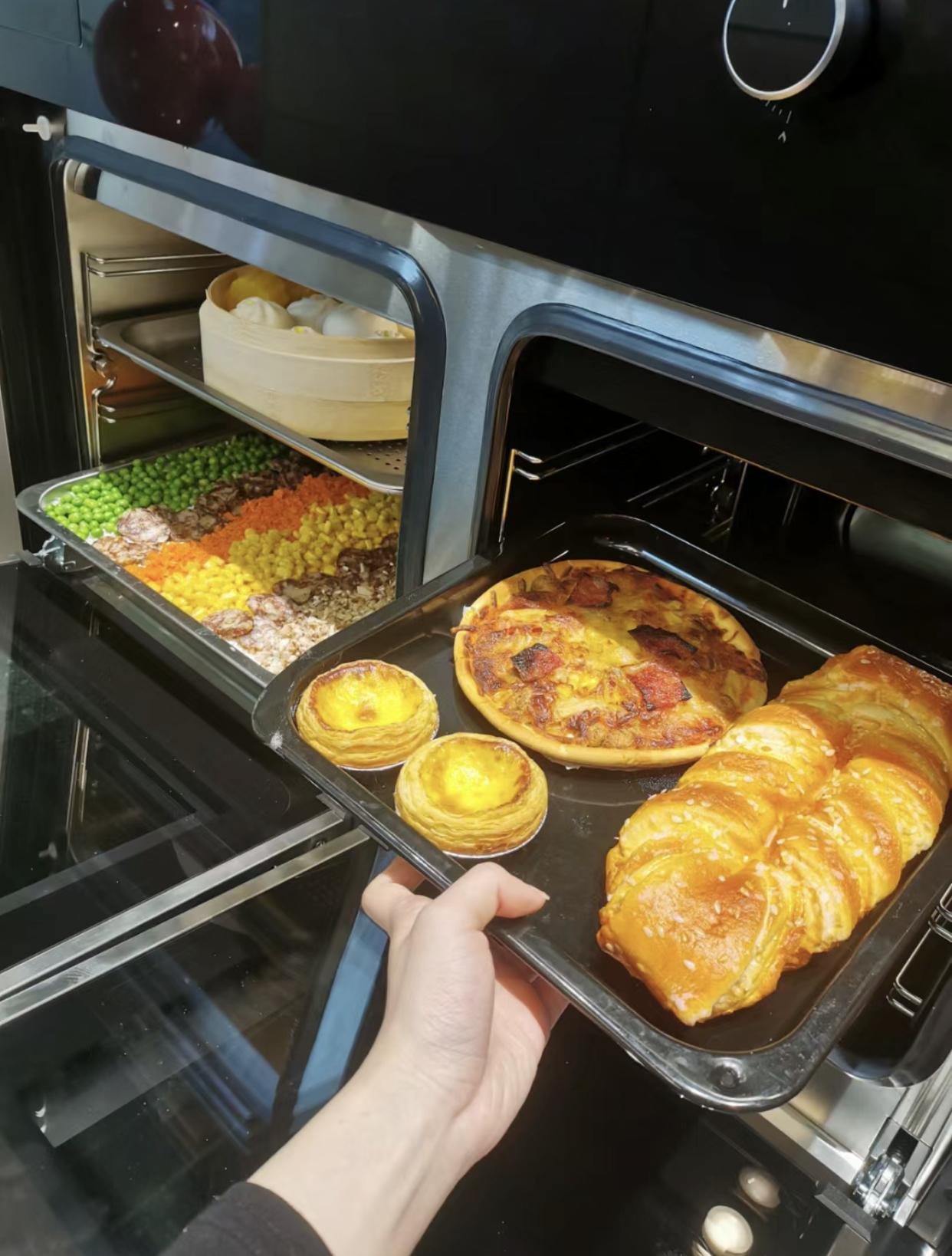 所以在你“蒸包子、蒸雜糧飯”的同時,還能“烤披薩、麪包、蛋撻”~