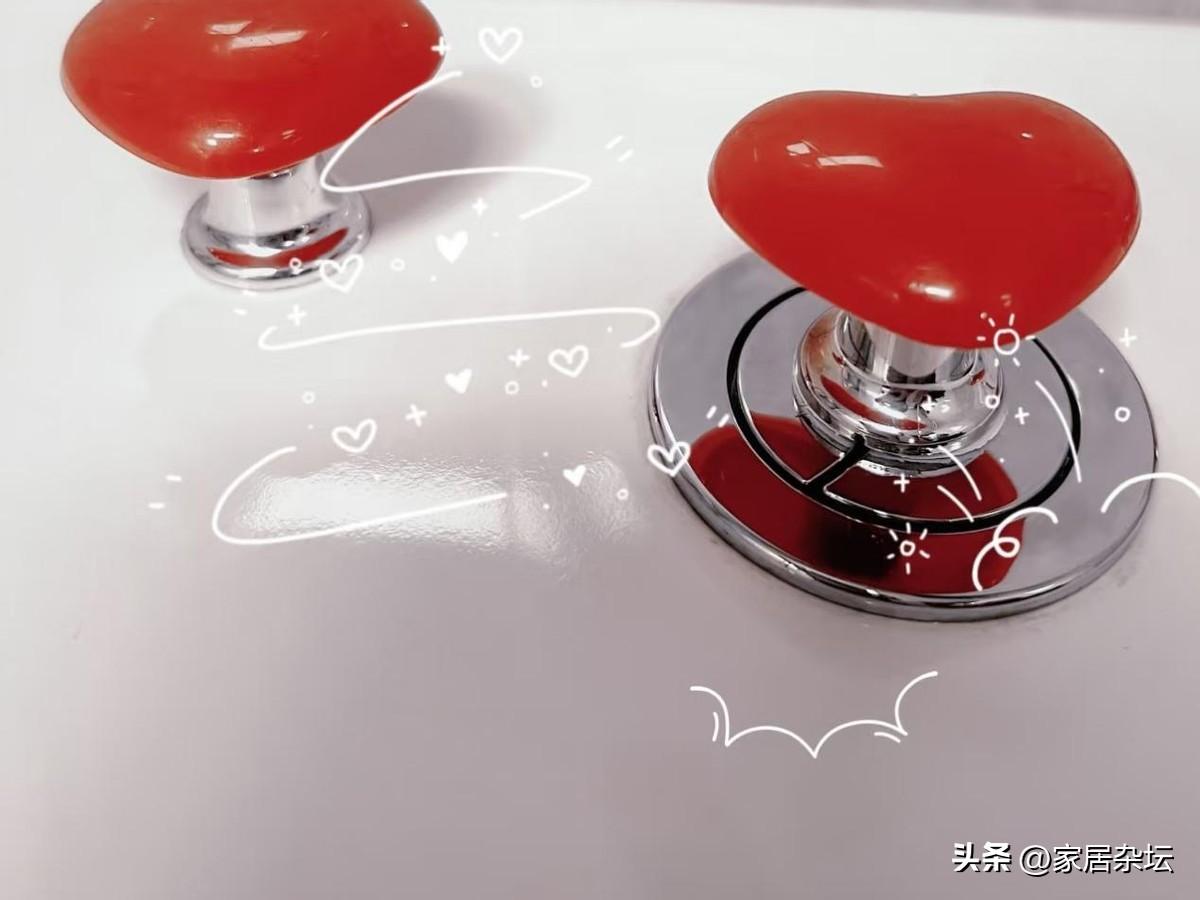 再看閨蜜家的馬桶按鈕,也讓我眼前一亮。大多數家庭的馬桶,都是金屬色的馬桶沖水按鈕。可是,她家的卻是紅色的桃心按鈕。