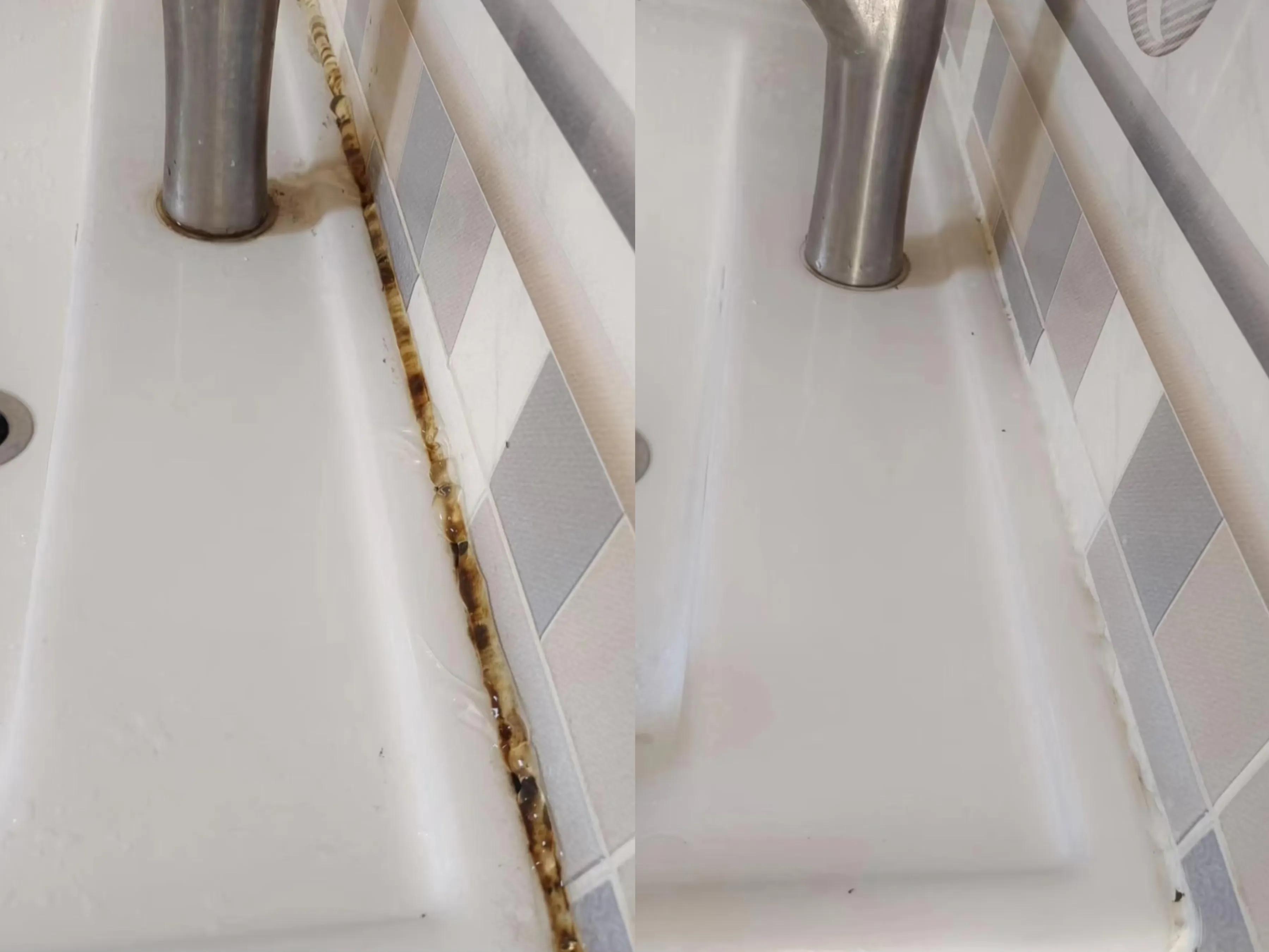 新家住久了,水槽周邊的玻璃膠上一定會長黴菌,發黑,這個東西關乎食品安全馬虎不得。