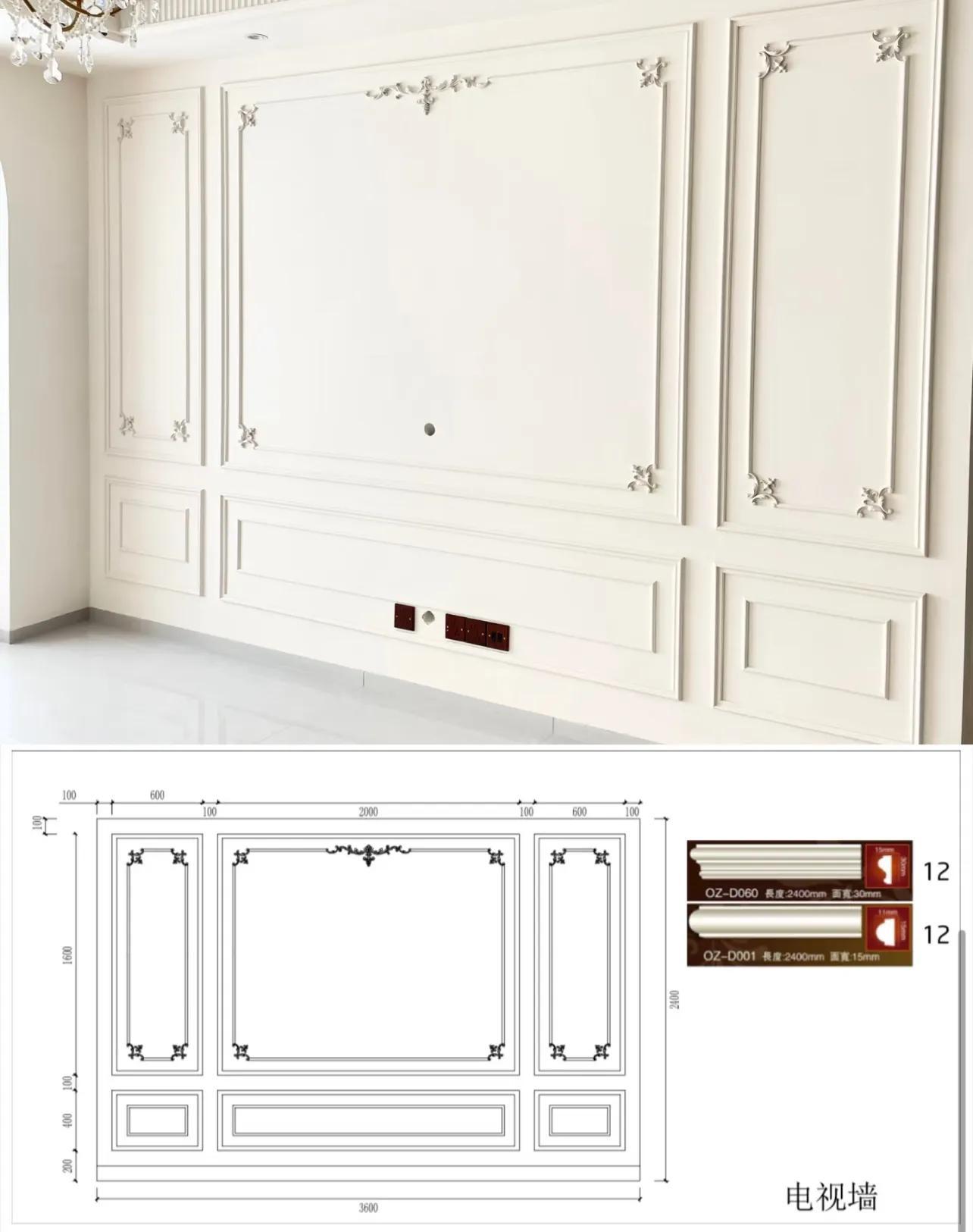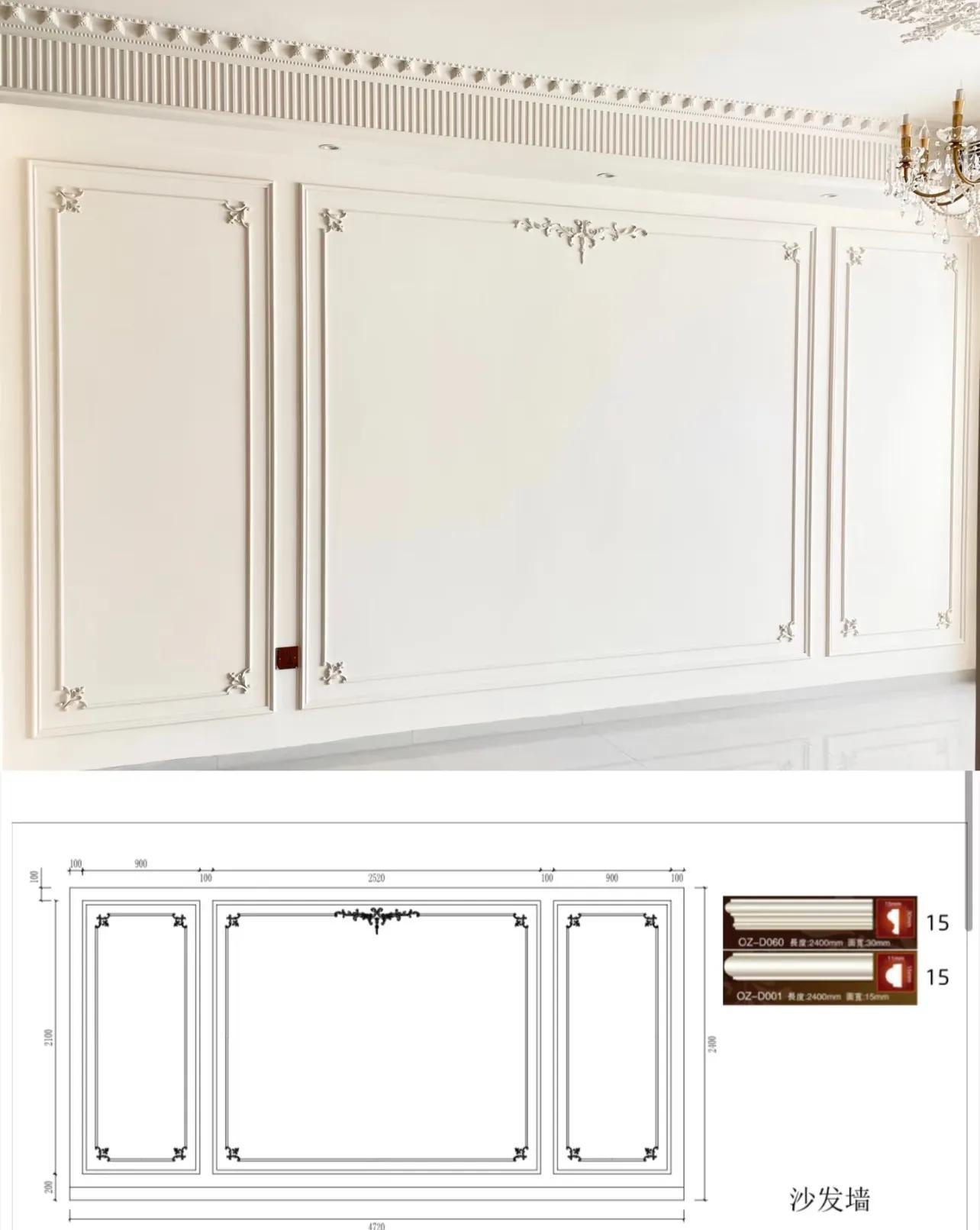 結合他倆的特點,我的建議是:頂上用石膏線,包括燈盤、陰角線,吊頂角花等,反正離得遠,看不清,不怕磕碰;牆面用pu線條,更漂亮,更精緻,磕一下也沒關係。