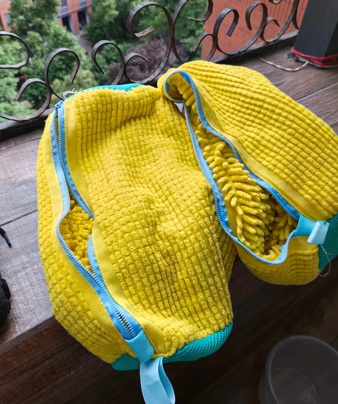 就是這個說不上來像雪尼爾擦車撣、還是地毯邊角料縫製的東西,它卻能讓我的鞋子嘎嘎乾淨。