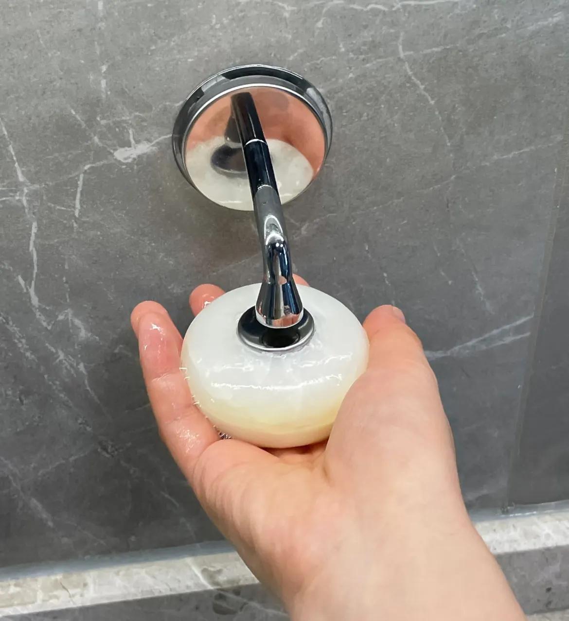 肥皂與底座之間是磁吸鏈接的,把磁吸扣按進肥皂裏,肥皂就可以隨時拿下來,用完再吸附上去,使用感非常好。