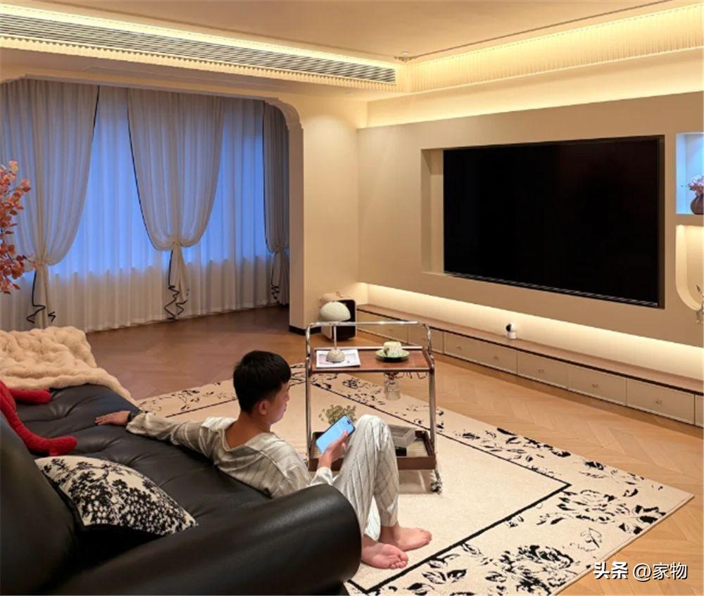 現在有很多人,都選擇不做電視牆而去做電視支架,電視掛上去,想往哪兒推往哪兒推,又靈活又節省空間,尤爲適合小戶型。