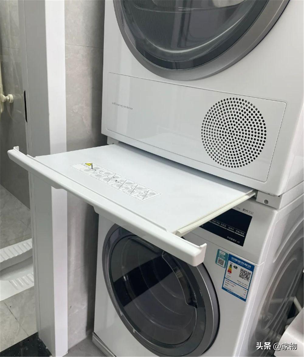 若家裏買了洗衣機烘乾機套裝,爲了更充分利用空間和使用便利性,建議在二者中間加一個洗烘置物板,既可以置物疊衣,不用的時候還可以完全收起來,不會太過佔地。