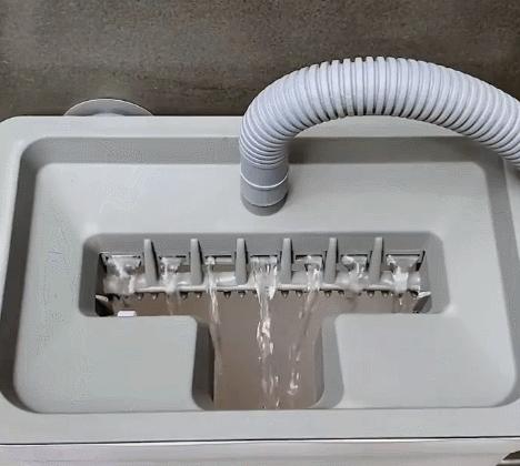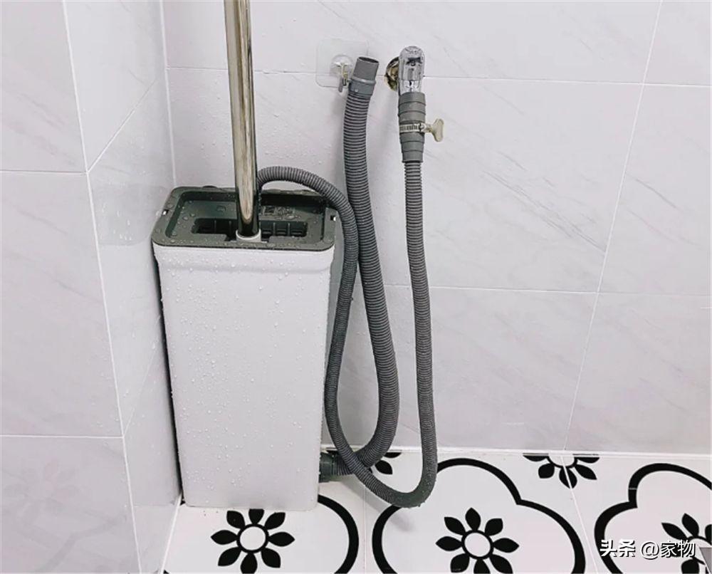 活水拖把其實和洗衣機原理有點像,打開水龍頭上水後,拖把桶就有水流循環,另一邊下水管道可以直接通向地漏。