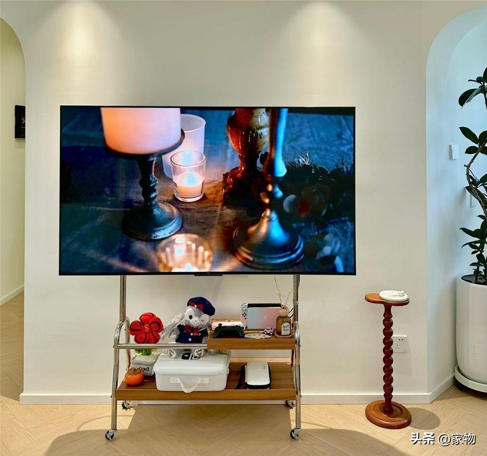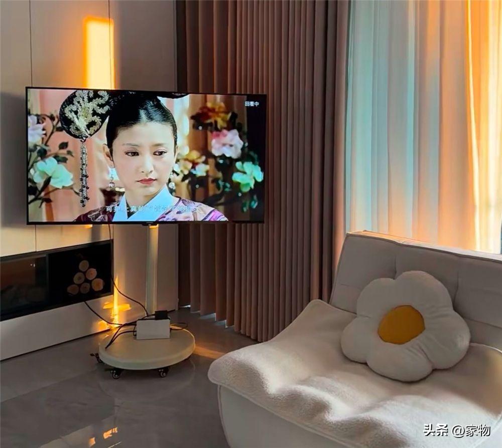 如今有很多年輕人,都選擇不做固定的電視牆,而是買一個移動電視支架,一個帶滾輪的支架、一臺電視,想把電視放到哪兒看都行,喫飯時甚至可以推到餐廳裏。