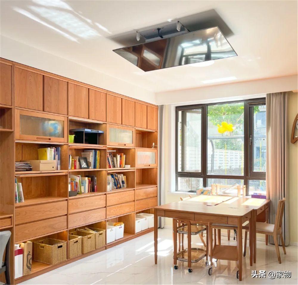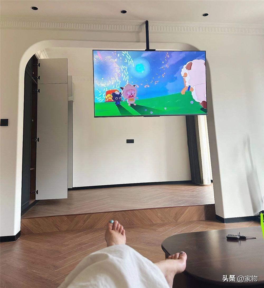 在頭頂預留電位,將電視側掛或者做電動升降安裝在天花板上,真的是很前衛的裝修方式,平日裏看不見,真到用的時候再降下來,實話實說也是蠻方便的。
