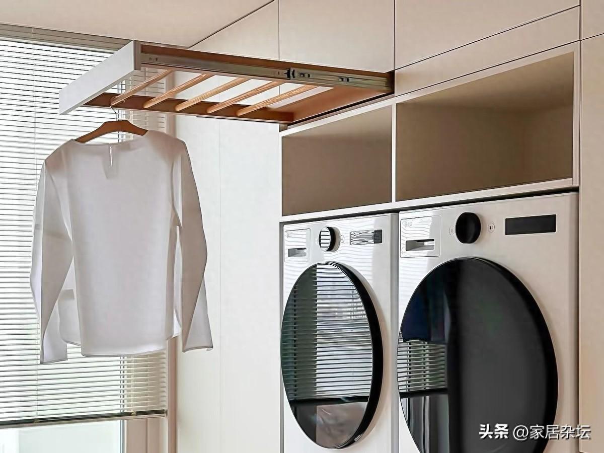 具體做法:在洗衣機的上部,安裝一個伸縮的晾衣杆。平時。這個晾衣杆可以推進櫃子裏;洗完衣服,可以被拉開,順手掛衣服。