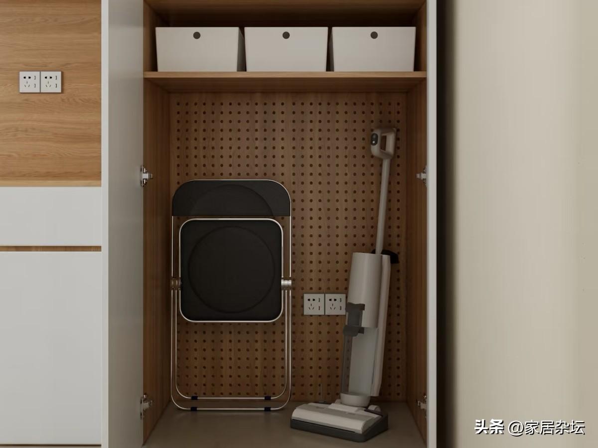 這個洞洞板的收納功能特別強。像我家裏的一些家政工具,洗地機,拖地機,拖布都可以放進去。還有,平時使用的一些電動工具。
