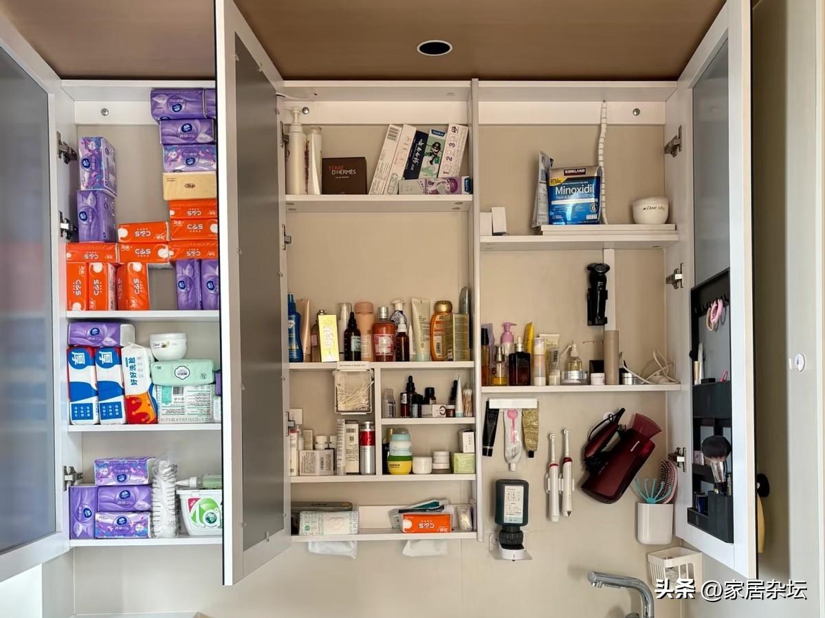 不過,給我的感受就是收納能力明顯變強了。以前,檯面上的洗漱品化妝品,都可以放進鏡櫃裏。