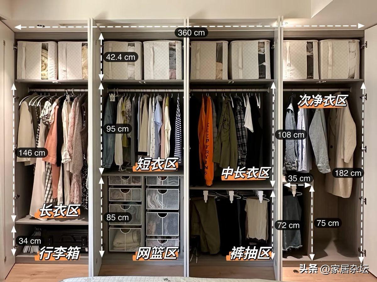 衣櫃收納,是衣服衣櫃最基礎的功。這裏就牽扯到上面跟大家說的衣櫃內部功能的劃分。