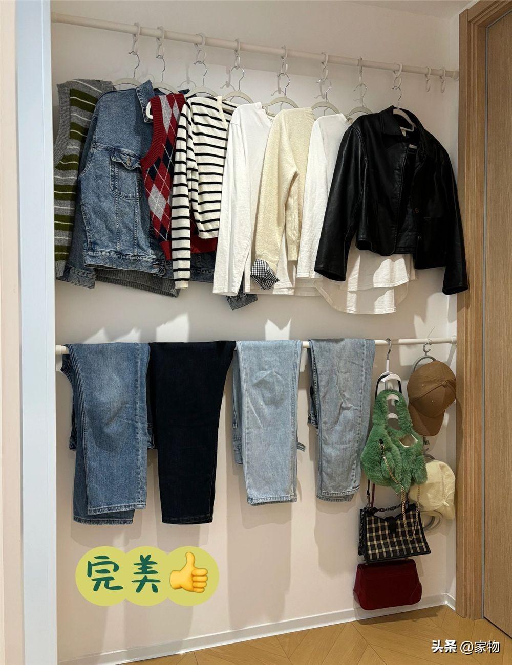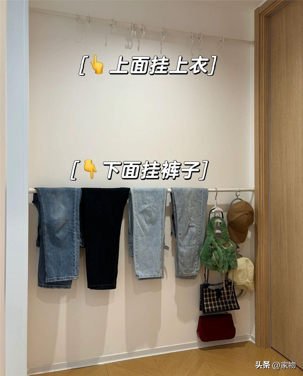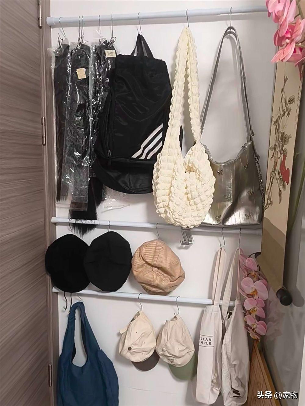 將其掛在上面以後,搭配掛鉤或者晾衣架, 能當做一個臨時的掛衣區,掛置第二天還要穿的次淨衣最合適不過,門扇打開時,也不會看到其雜亂。